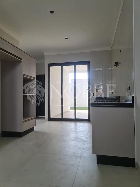 1 suíte + 2 quartos, jardim de inverno, banheiro social, lavanderia privativa, garagem paralela para 2 carros + Ambiente integrado contemplando sala/ cozinha e área gourmet.
