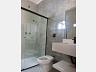 Banheiros com nichos, pias esculpidas, torneiras monocomando. Obs: suíte com ducha dupla.