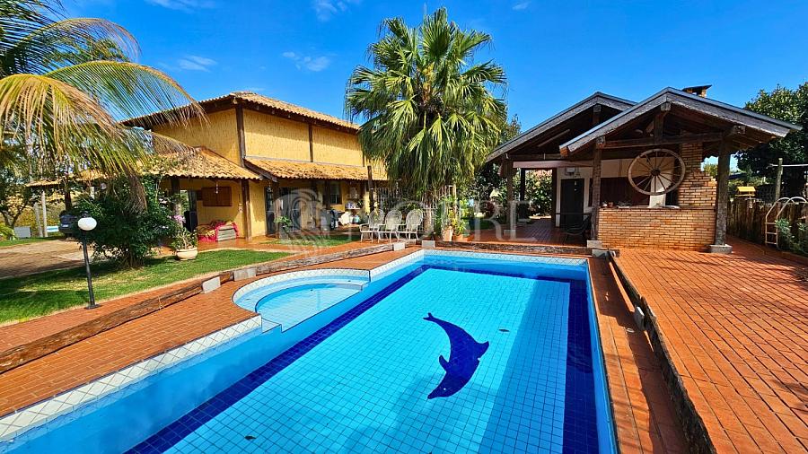 Linda chácara de esquina, na Estância Zauna, com amplos 4.000 m² de terreno, em localização privilegiada, com casa de 234 m² e piscina de 40 m².