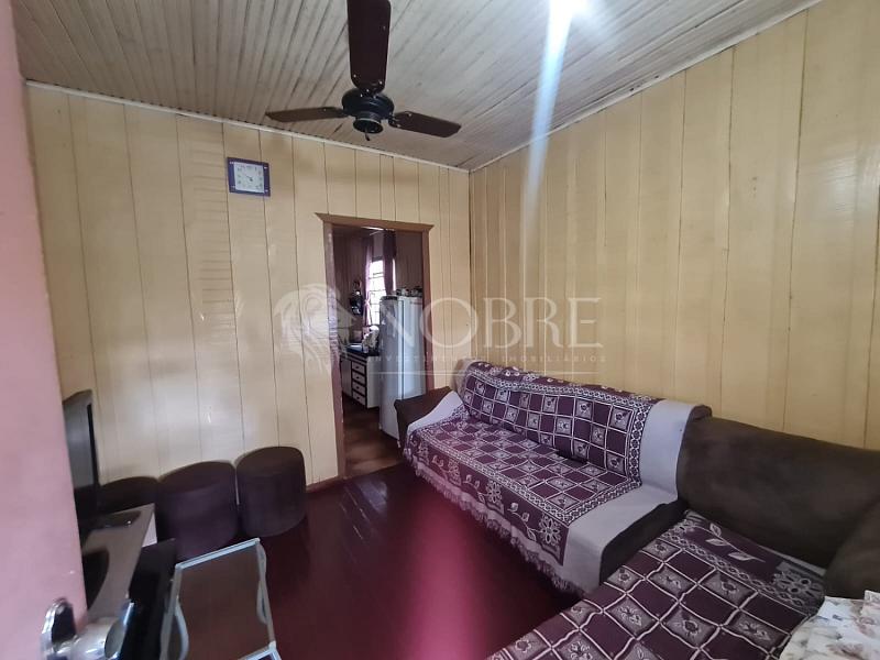 Contendo uma casa mista de madeira de peroba rosa com aproximadamente 90 m² e disposta em 5 cômodos, mais banheiro e área de serviço com uma varanda na frente.